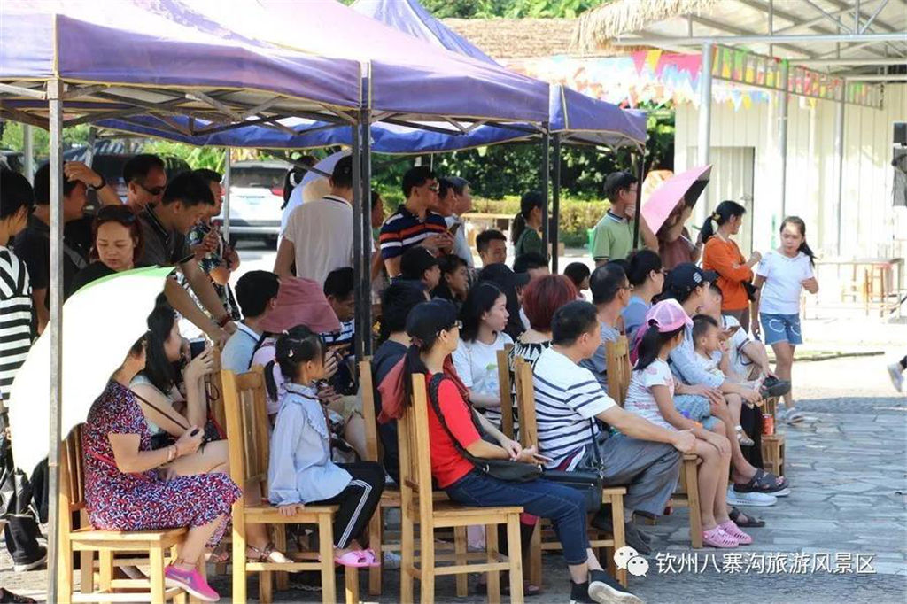 國(guó)慶期間景區(qū)舉辦以“炫彩國(guó)慶節(jié),玩轉(zhuǎn)八寨溝”為主題的系列活動(dòng)受到眾多游客親睞。游客們白天可以觀看精彩歌舞文藝演出,玩真人CS運(yùn)動(dòng),品嘗各種各樣的特產(chǎn)美食,學(xué)制作欽州坭興陶,體驗(yàn)欽州第一漂—八寨溝森林漂流,登山徒步暢游山水,呼吸新鮮空氣,天然水潭戲水其樂(lè)無(wú)窮,整個(gè)景區(qū)一片游客如織、喜樂(lè)融融的景象。