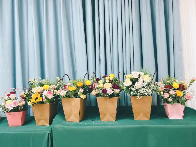 (圖為“花香祝福,獻(xiàn)愛母親”——2023年母親節(jié)插花暨主題閱讀活動現(xiàn)場)