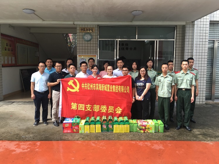 在中國人民解放軍建軍91周年之際,欽州市濱海新城置業(yè)集團有限公司第四黨支部前往武警欽州邊防支隊勤務中隊開展擁軍慰問活動。