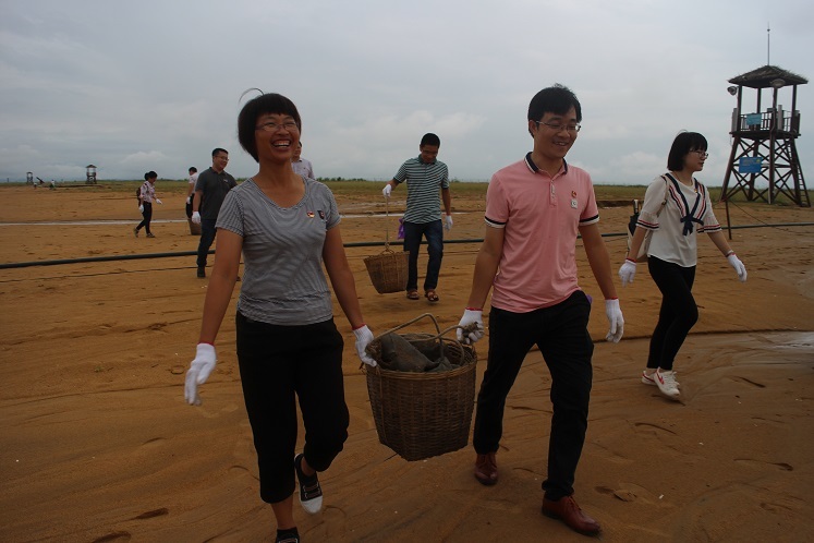 風(fēng)雨停歇之時(shí),第一、二黨支部全體黨員捋起袖子,提起垃圾筐,在黃金浴場(chǎng)上進(jìn)行“拉網(wǎng)式”清撿垃圾活動(dòng)?;顒?dòng)中,大家分工協(xié)作,團(tuán)結(jié)互助,忙得不亦樂乎,現(xiàn)場(chǎng)一片熱火朝天的景象。沙灘上的垃圾大多為煙蒂、石頭、礦泉水瓶等,考慮群眾在沙灘上大都赤腳走路,為了群眾的安全,黨員們將沙灘上的貝殼也都一并清撿,清除貝類劃傷的風(fēng)險(xiǎn)。其中一位老黨員向大家說(shuō)到:“大家一定不要覺得清潔活動(dòng)就只是單純地?fù)炖?,我們撿的可都?lsquo;黃金’啊,別看小小一個(gè)煙蒂,我們把它撿起來(lái)了,環(huán)境就美了,群眾就會(huì)更加自覺了,那么誰(shuí)也不舍得扔下手中的這枚‘黃金’了。所以,我們黨員今天的清潔行動(dòng)不僅是推行群眾文明出行的理念,更是引導(dǎo)群眾自覺保護(hù)環(huán)境,關(guān)愛自然,從而讓清潔、環(huán)保成為每個(gè)人的責(zé)任。”老黨員看似平淡的話語(yǔ),卻是對(duì)我們的諄諄教導(dǎo),進(jìn)一步激發(fā)了我們身為一名共產(chǎn)黨員的責(zé)任感和使命感,同時(shí)也讓我們深刻認(rèn)識(shí)到生態(tài)環(huán)境建設(shè)和保護(hù)迫在眉睫。