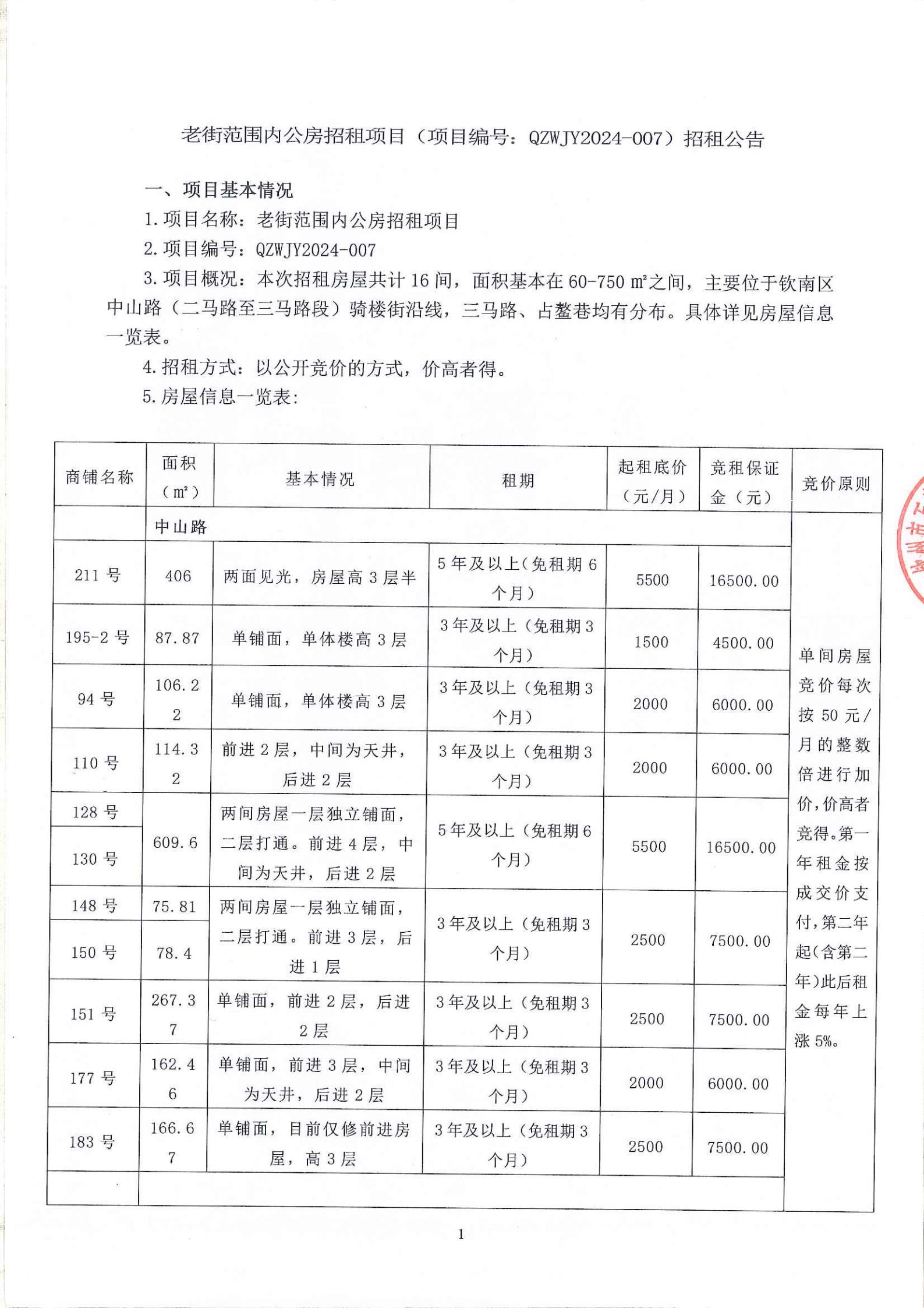 老街范圍內(nèi)公房招租項(xiàng)目招租公告