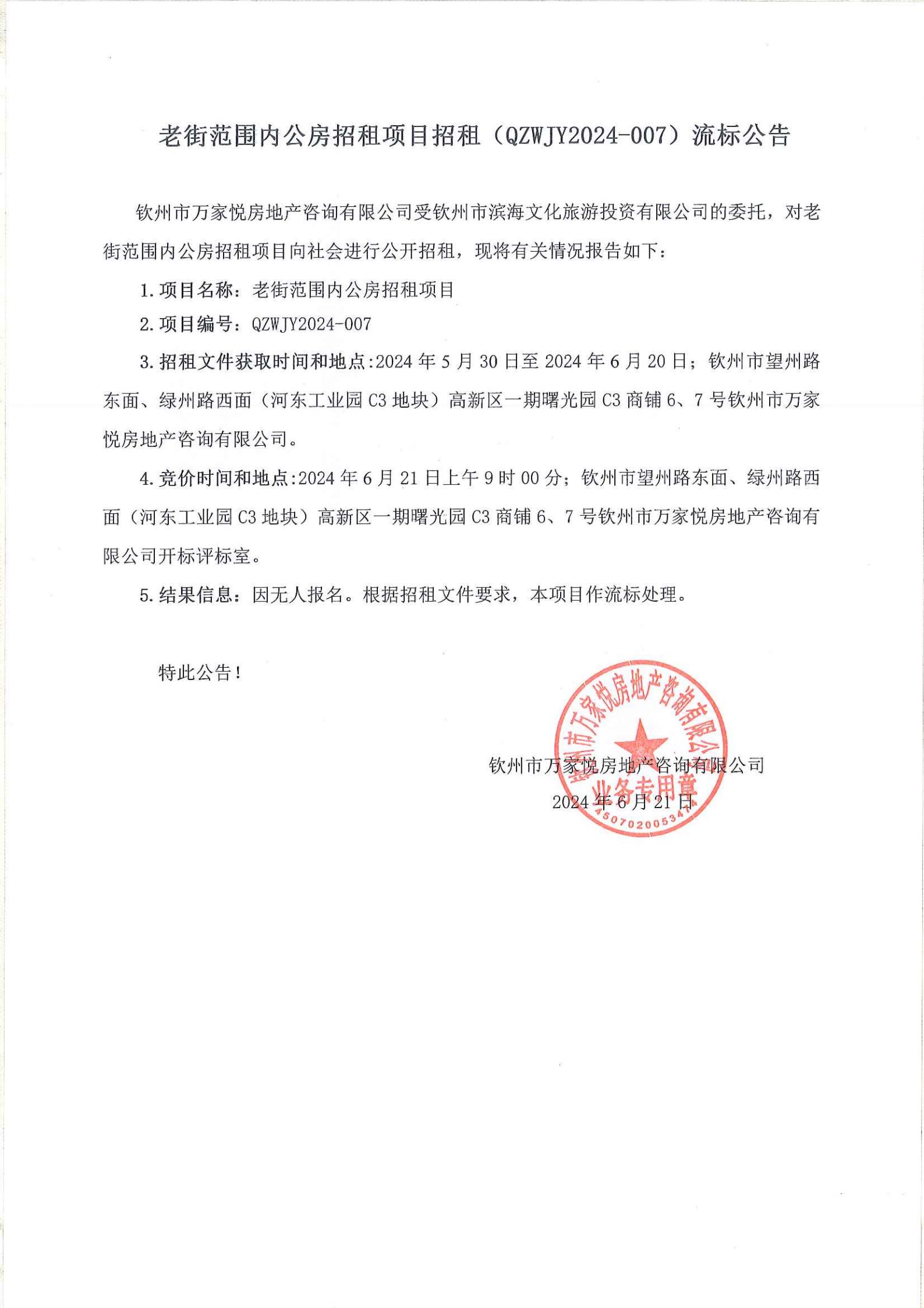 老街范圍內(nèi)公房招租項(xiàng)目招租流標(biāo)公告