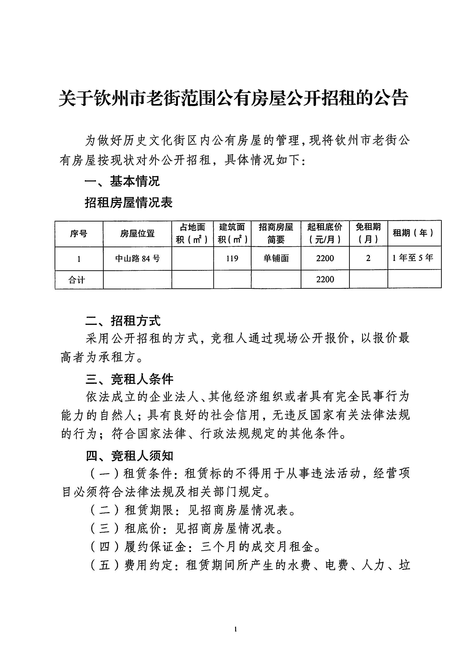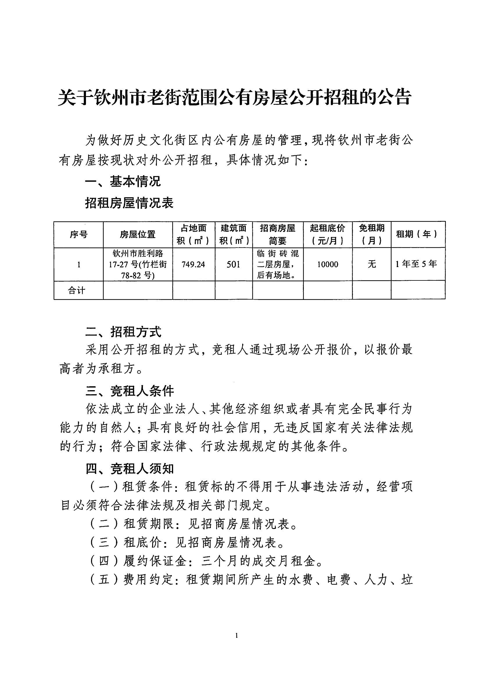 關(guān)于欽州市老街范圍2處公房公開招租結(jié)果公示