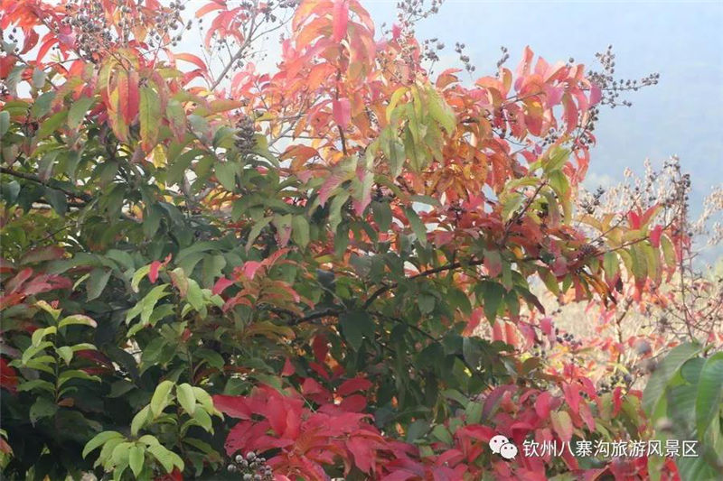除了梅花,八寨溝梅園里的楓樹葉也開得正旺,非常漂亮,楓葉嬌紅似火,遠(yuǎn)眺火紅的楓葉像一團(tuán)團(tuán)火在燃燒,那些從樹上飄落下來的葉子,像一只只紅色的蝴蝶在空中自由的飛舞。