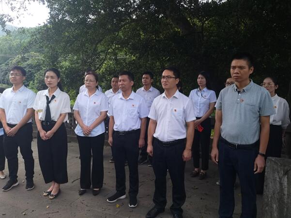 在泗峽坳抗日烈士墓前,黨員同志們神情肅穆,依次參觀了烈士公墓、烈士紀(jì)念碑、碑廊和紀(jì)念亭,一同追憶抗日戰(zhàn)爭(zhēng)時(shí)期的崢嶸歲月,深刻緬懷為革命事業(yè)壯烈犧牲的戰(zhàn)士。