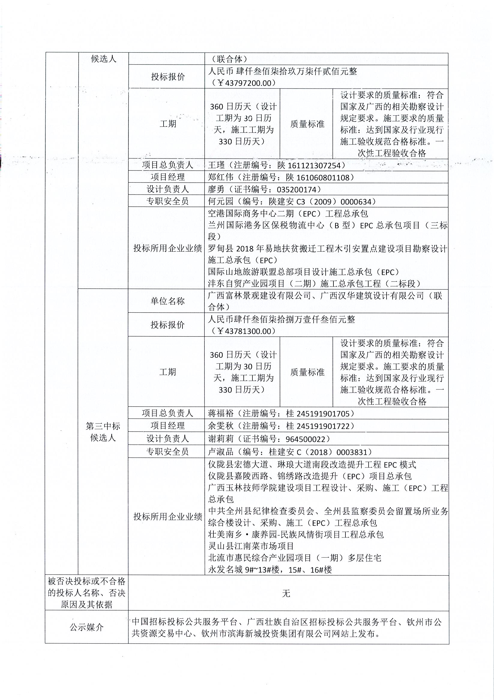 欽州市中山路、占鰲巷旅游開發(fā)項目(一期)道路、外立面、景觀及試點工程設(shè)計-采購-施工(EPC)工程總承包中標候選人公示