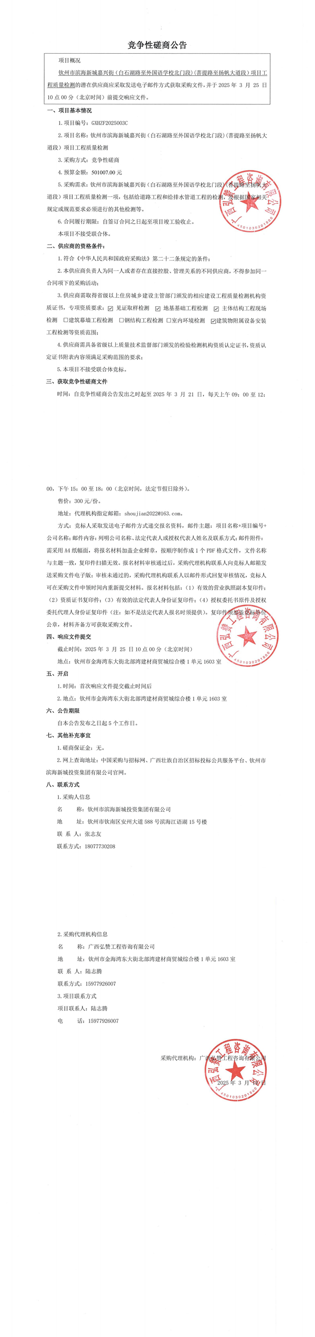 競爭性磋商公告-欽州市濱海新城嘉興街(白石湖路至外國語學(xué)校北門段)(菩...