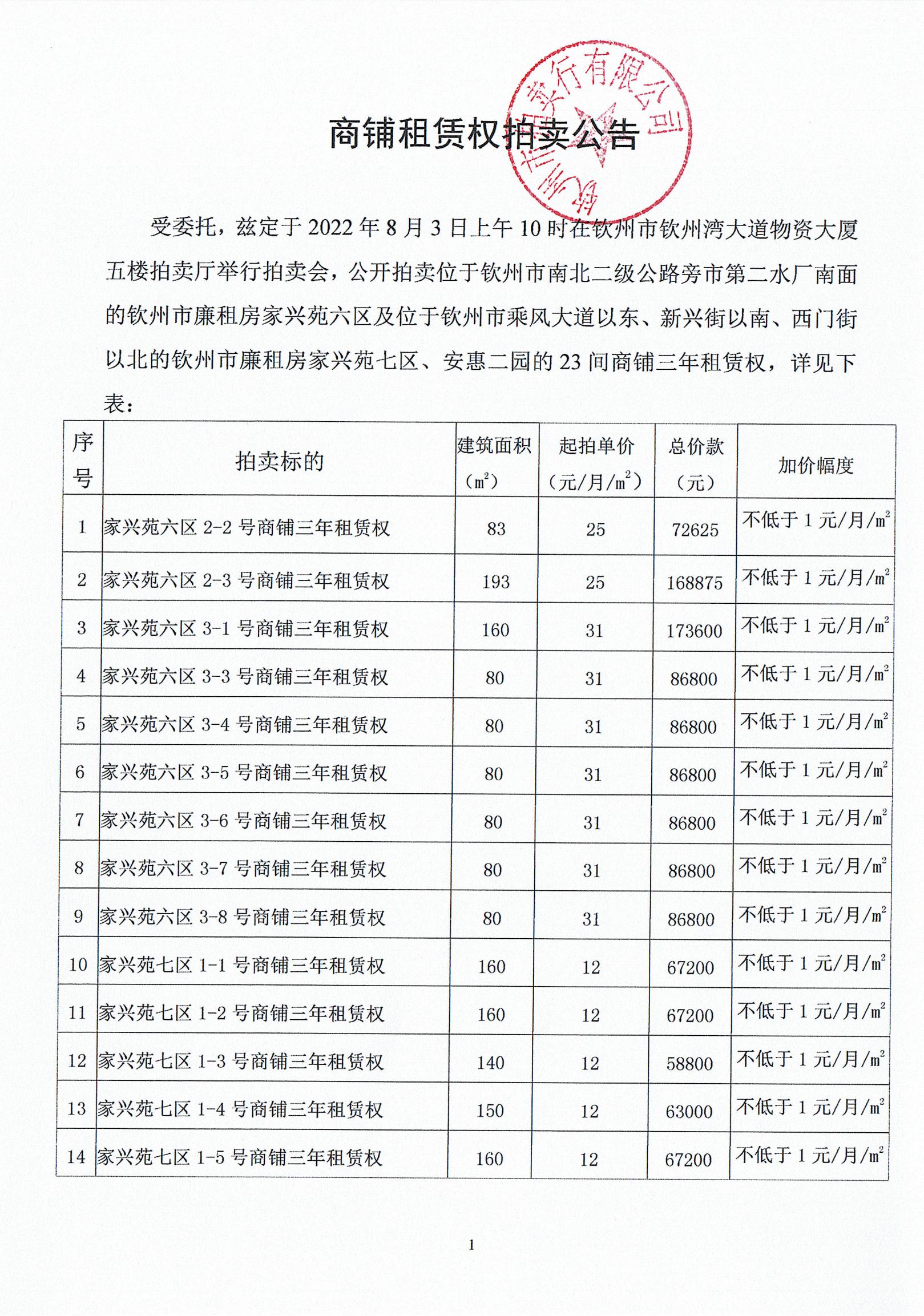 (家興苑六區(qū)、七區(qū)、安惠二園)商鋪租賃權拍賣公告