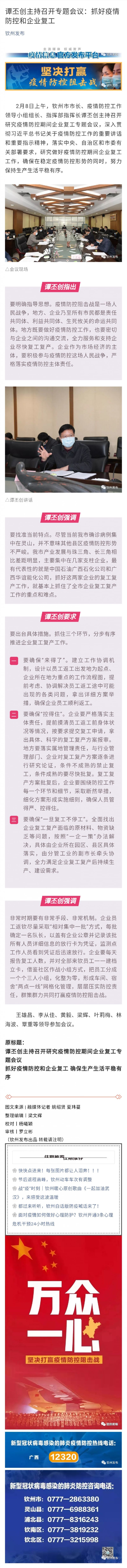譚丕創(chuàng)主持召開專題會議:抓好疫情防控和企業(yè)復工