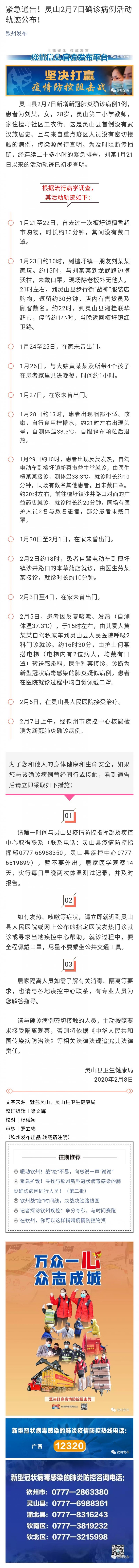 緊急通告!靈山2月7日確診病例活動軌跡公布!