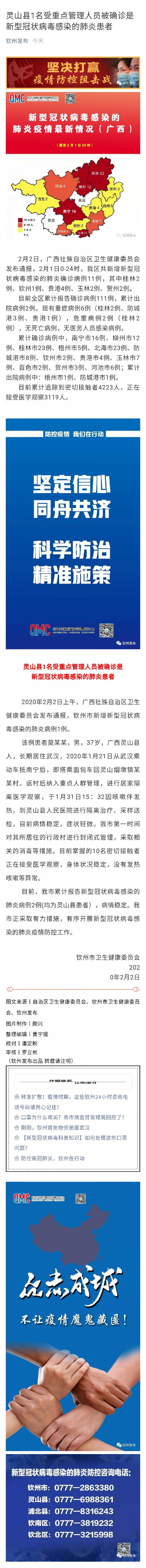 靈山縣1名受重點管理人員被確診是新型冠狀病毒感染的肺炎患者