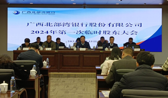 2024年1月25日,廣西北部灣銀行股份有限公司2024年第一次臨時股東大會在廣西北部灣銀行總行4樓406報告廳順利召開。此次會議由廣西北部灣銀行股份有限公司董事會召集,黎棟國董事長主持。廣西投資集團金融控股有限公司、巨人投資有限公司、廣西出版?zhèn)髅郊瘓F有限公司及欽州市濱海新城投資集團有限公司等股東及股東代理人出席會議。