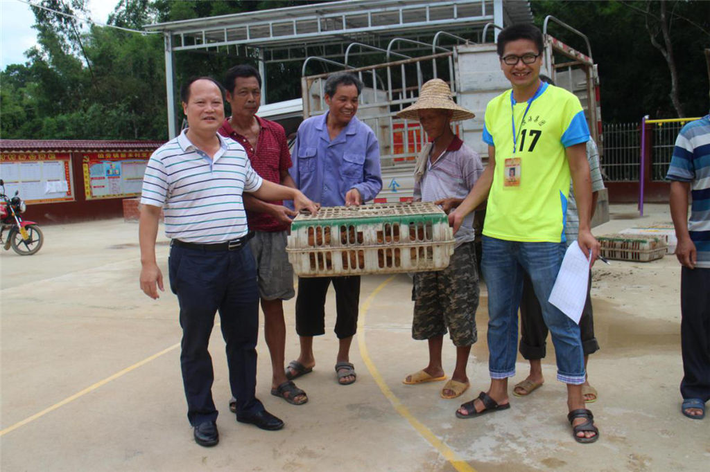 2018年7月18日,集團(tuán)公司副總經(jīng)理?xiàng)钚聴澛什糠指刹柯毠で巴潞檀?,為集團(tuán)公司精準(zhǔn)幫扶的貧困戶免費(fèi)送去375羽雞苗(價(jià)值約5000元),幫助貧困戶解決在產(chǎn)業(yè)發(fā)展過(guò)程中遇到的投入成本問(wèn)題,為其增收致富創(chuàng)造有利條件。
