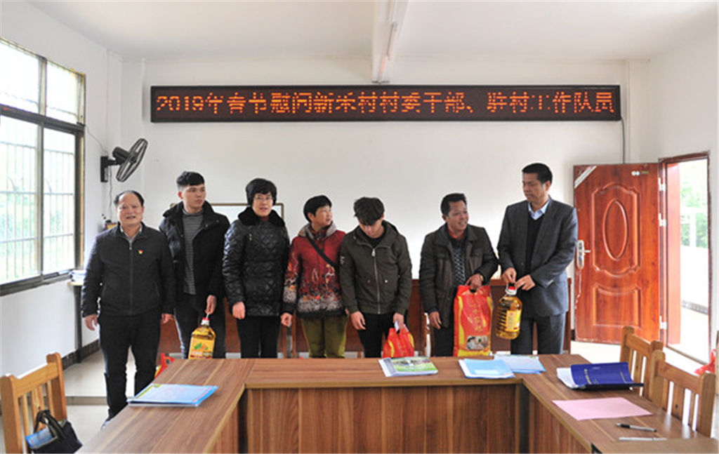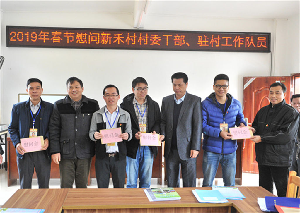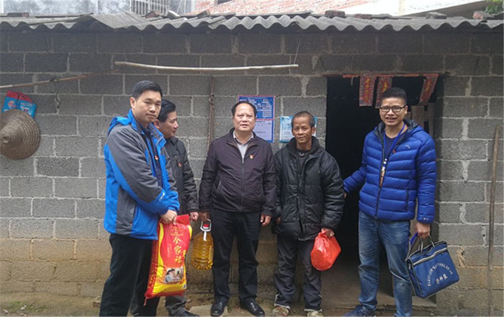春節(jié)來臨之際,為讓困難黨員、貧困戶、村干部和駐村工作隊員渡過一個歡樂祥和的春節(jié),集團(tuán)公司副總經(jīng)理楊新棟率領(lǐng)黨員干部冒著嚴(yán)寒,帶著濃濃暖意前往幫扶聯(lián)系點靈山縣伯勞鎮(zhèn)新禾村開展春節(jié)慰問活動,送上集團(tuán)公司的關(guān)懷問候和新春祝福。