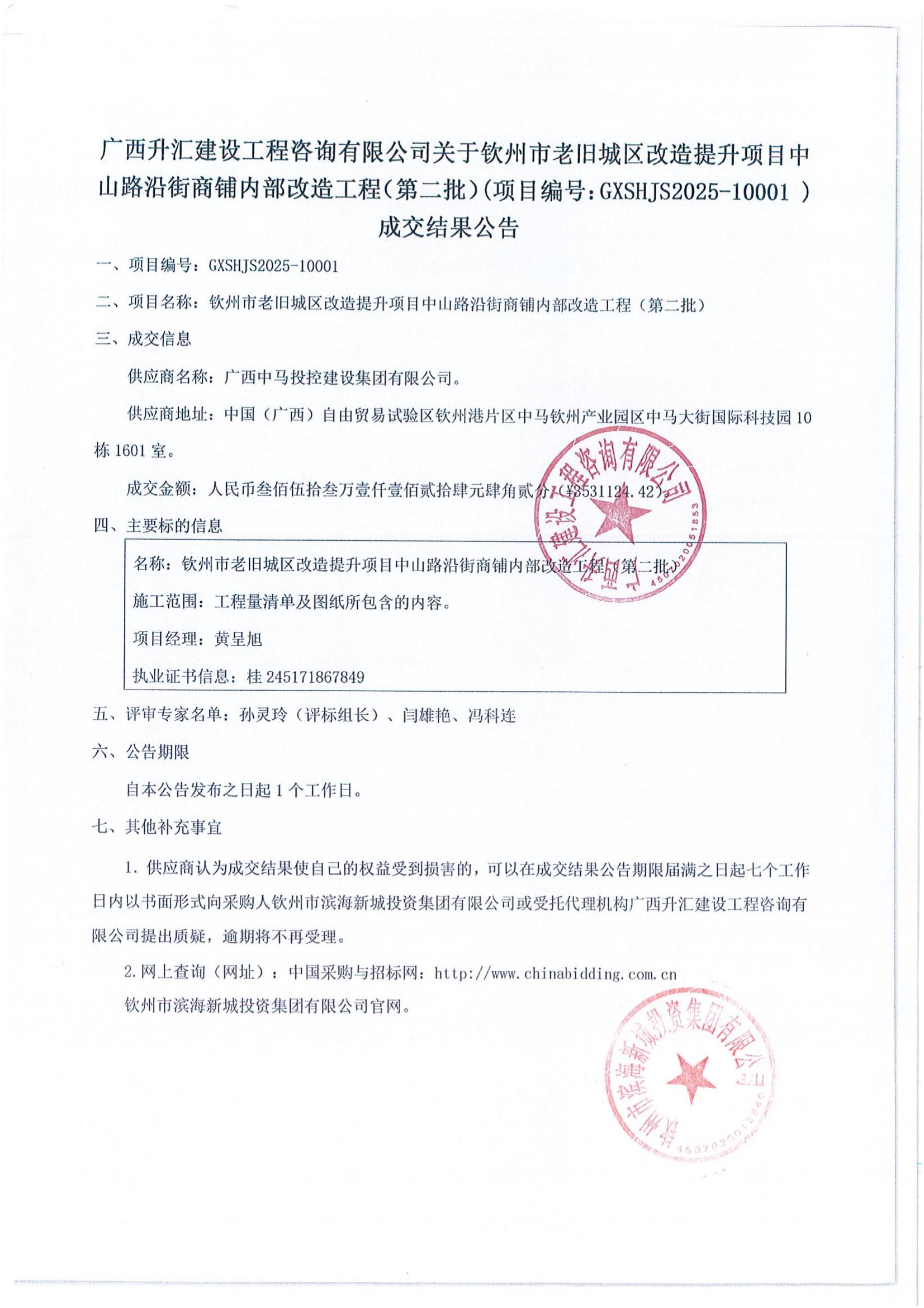 欽州市老舊城區(qū)改造提升項目中山路沿街商鋪內(nèi)部改造工程(第二批)-成交公告