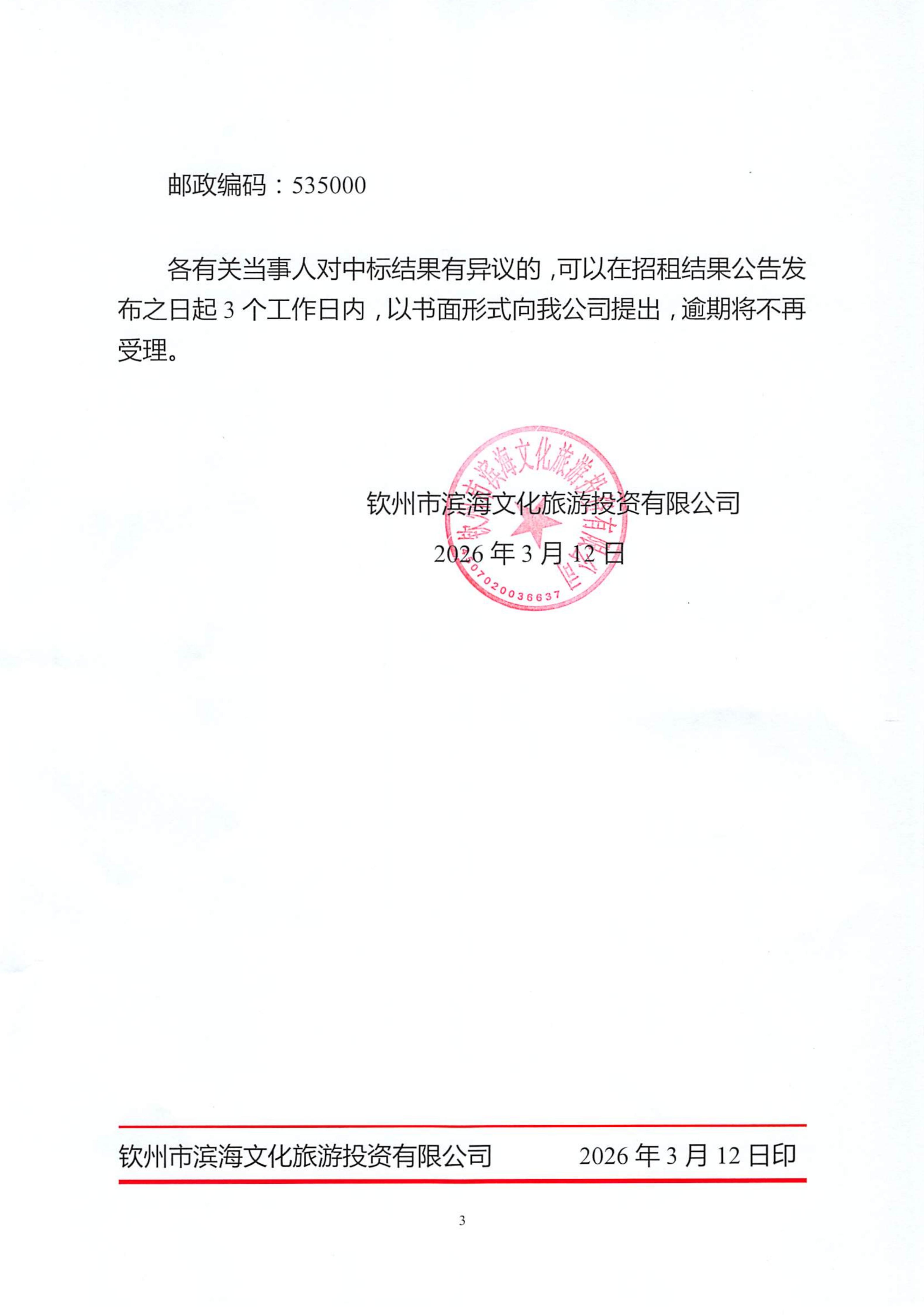 欽州市濱海文化旅游投資有限公司關(guān)于欽州市老街范圍房屋公開招租結(jié)果公示