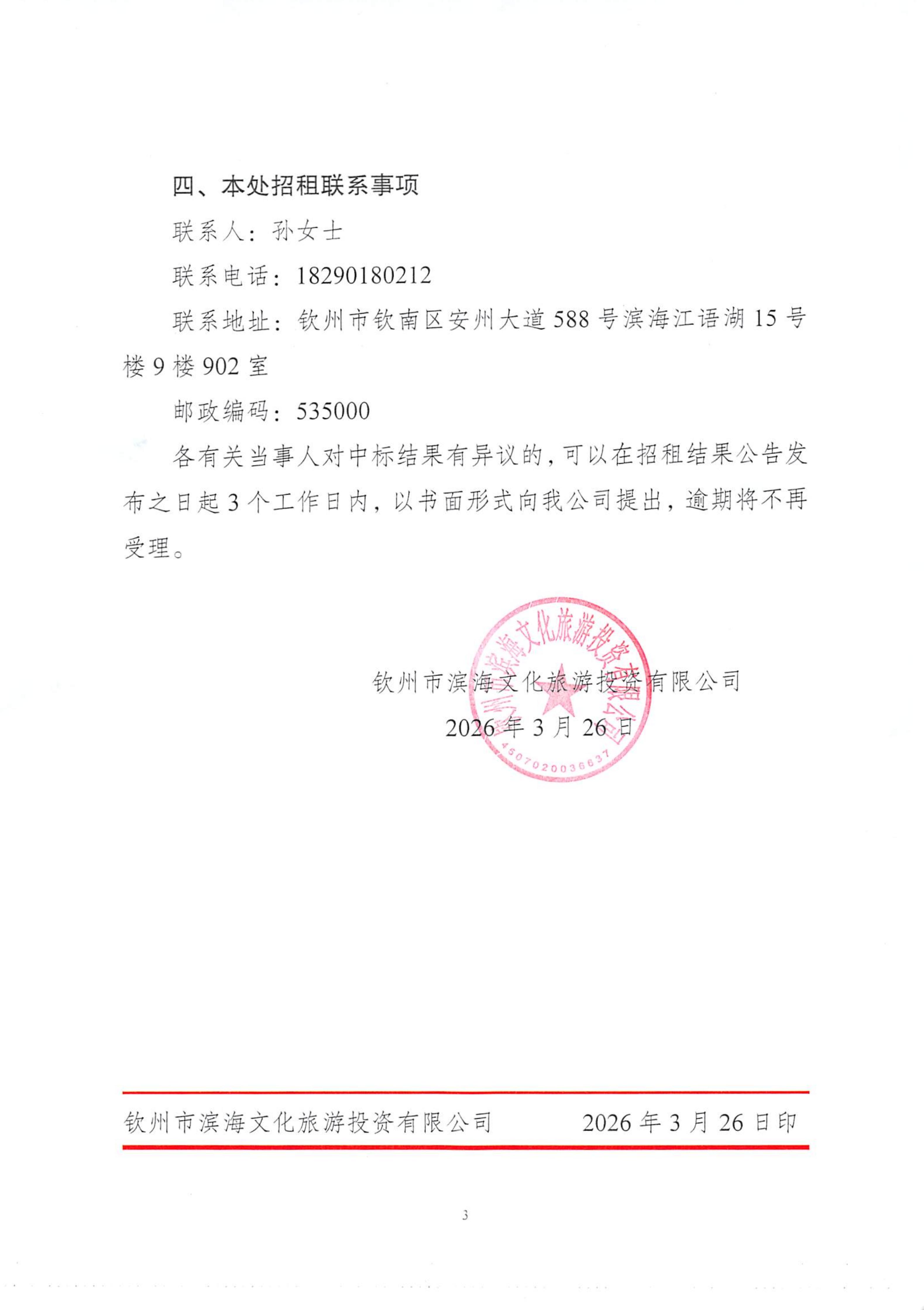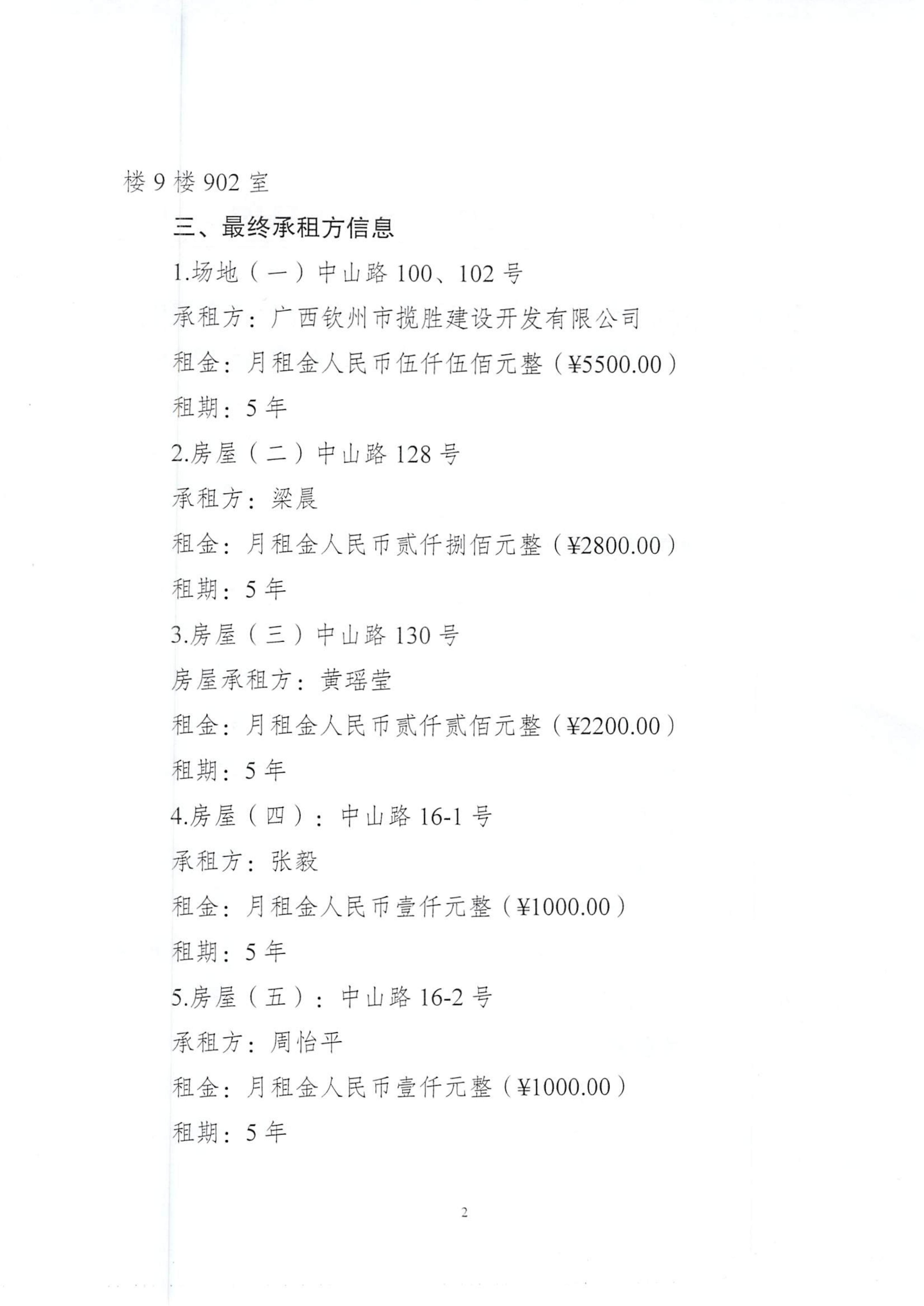 欽州市濱海文化旅游投資有限公司關(guān)于欽州市老街范圍5處房屋(場地)公開招租結(jié)果公示
