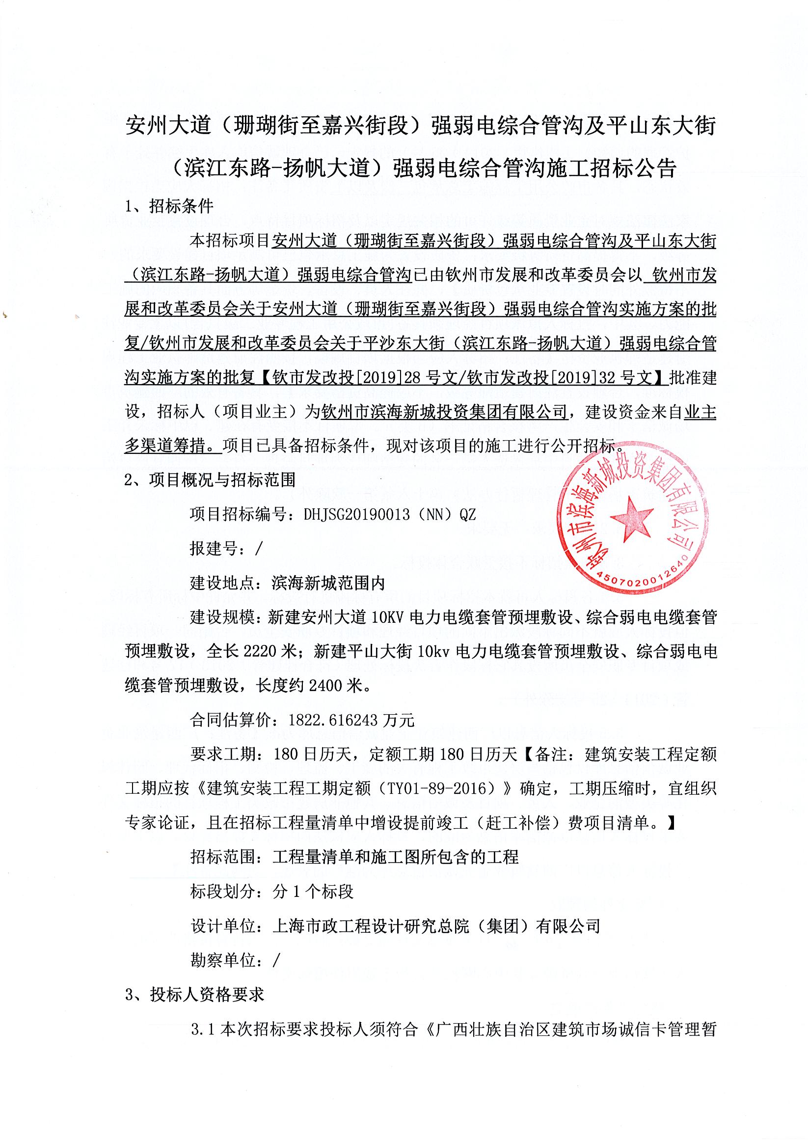 本招標(biāo)項(xiàng)目 欽州市濱海新城嘉興街(嘉禾街-揚(yáng)帆大道)道路工程及嘉興街(揚(yáng)帆大道-安州大道)地下綜合管廊項(xiàng)目、欽州市公安局沙埠派出所項(xiàng)目、欽州市...