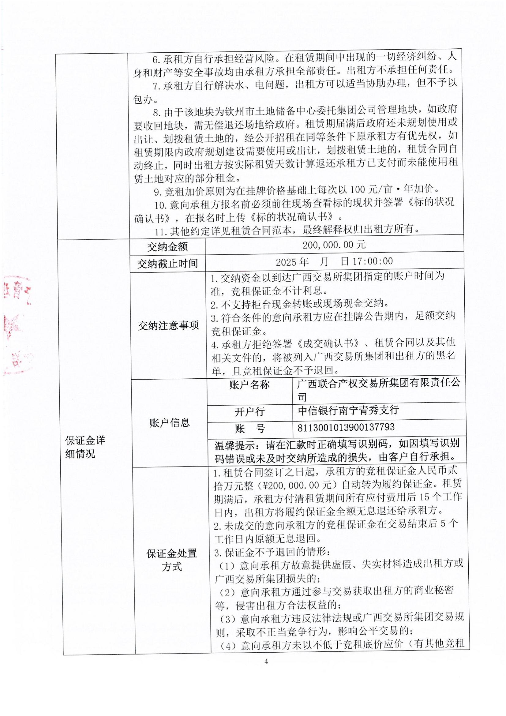 欽州市欽南區(qū)揚(yáng)帆大道與龍海路交匯處西北角地塊公開招租項(xiàng)目