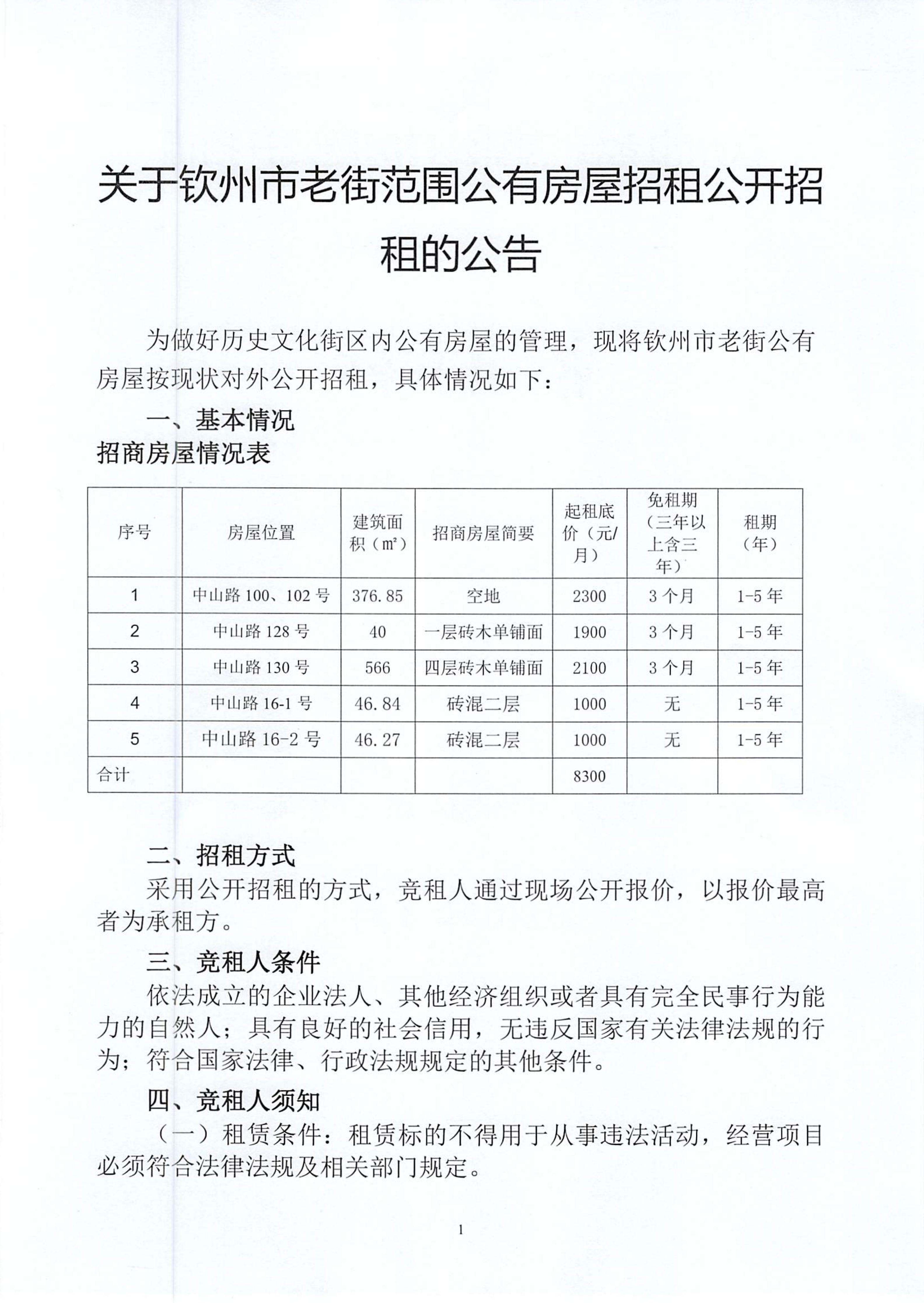 關(guān)于欽州市老街范圍公有房屋招租公開招租的公告